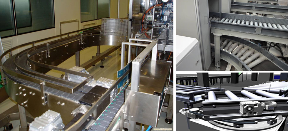 该生产线主要用于生产中直线输送生产线的转接、换向、汇流或分流,广泛用于各种物流输送生产线中,功能多样性满足各种需求。